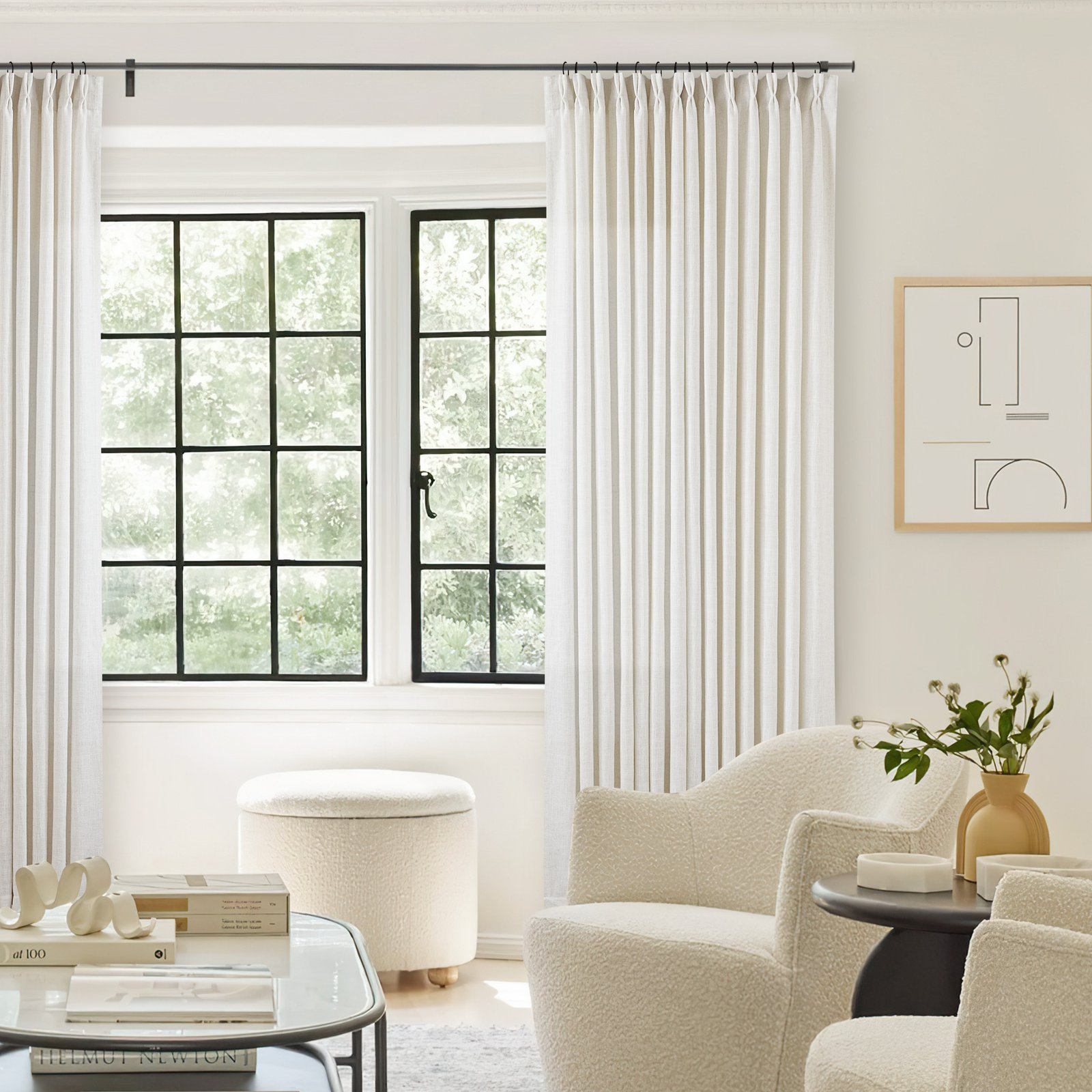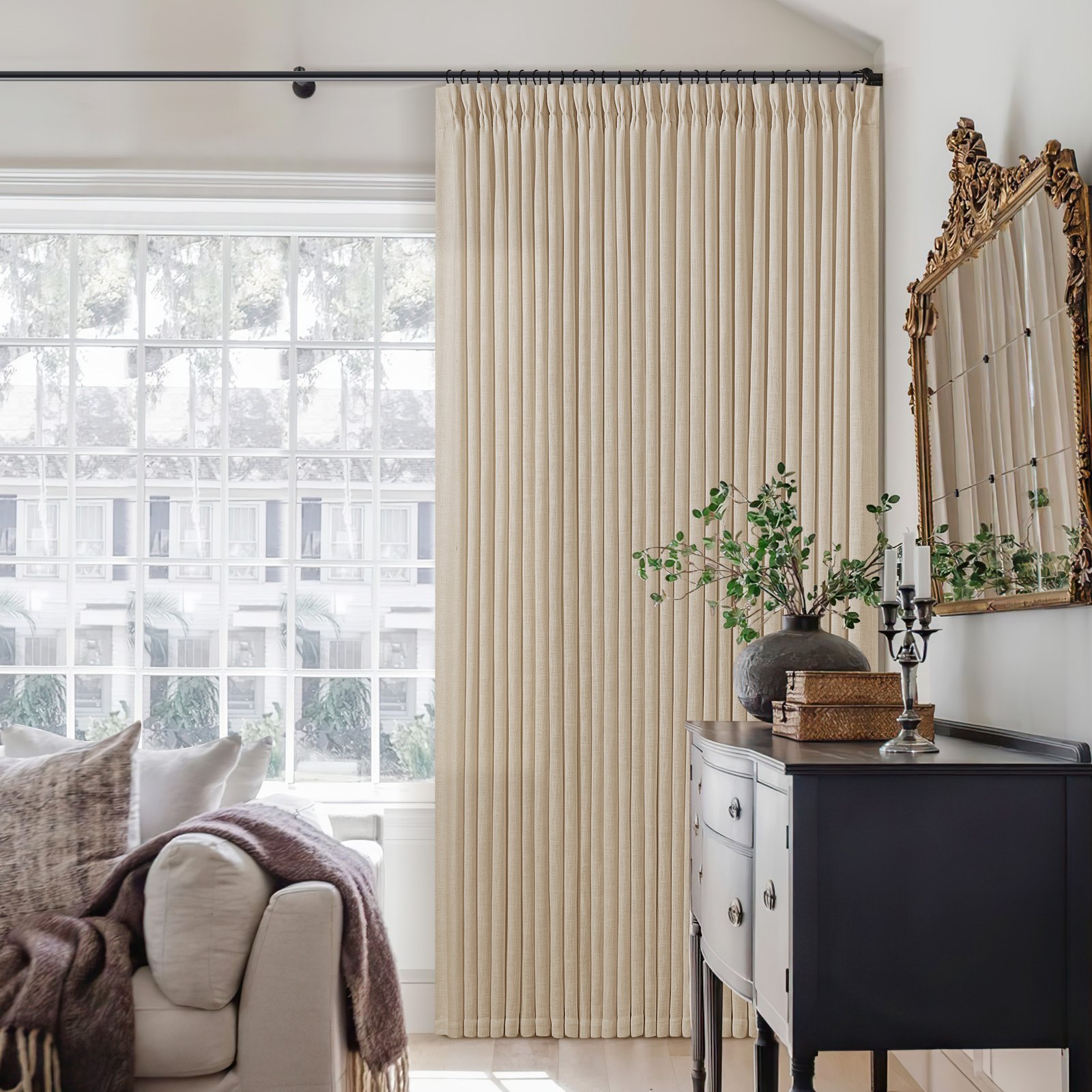 Our newly launched custom curtains are crafted from upgraded 380GSM fabric, a premium blend of linen, cotton and polyester. They bring a touch of natural aesthetic to your home while ensuring long-lasting durability – the perfect choice for creating a warm, inviting space. Every curtain is handcrafted with meticulous attention to detail, reflecting our commitment to quality in every stitch. Each curtain undergoes memory shaping, keeping pleats neat and full for a luxurious appearance that surpasses curtains without memory shaping. If minor creases appear upon delivery, low-temperature ironing can easily restore their perfect look.