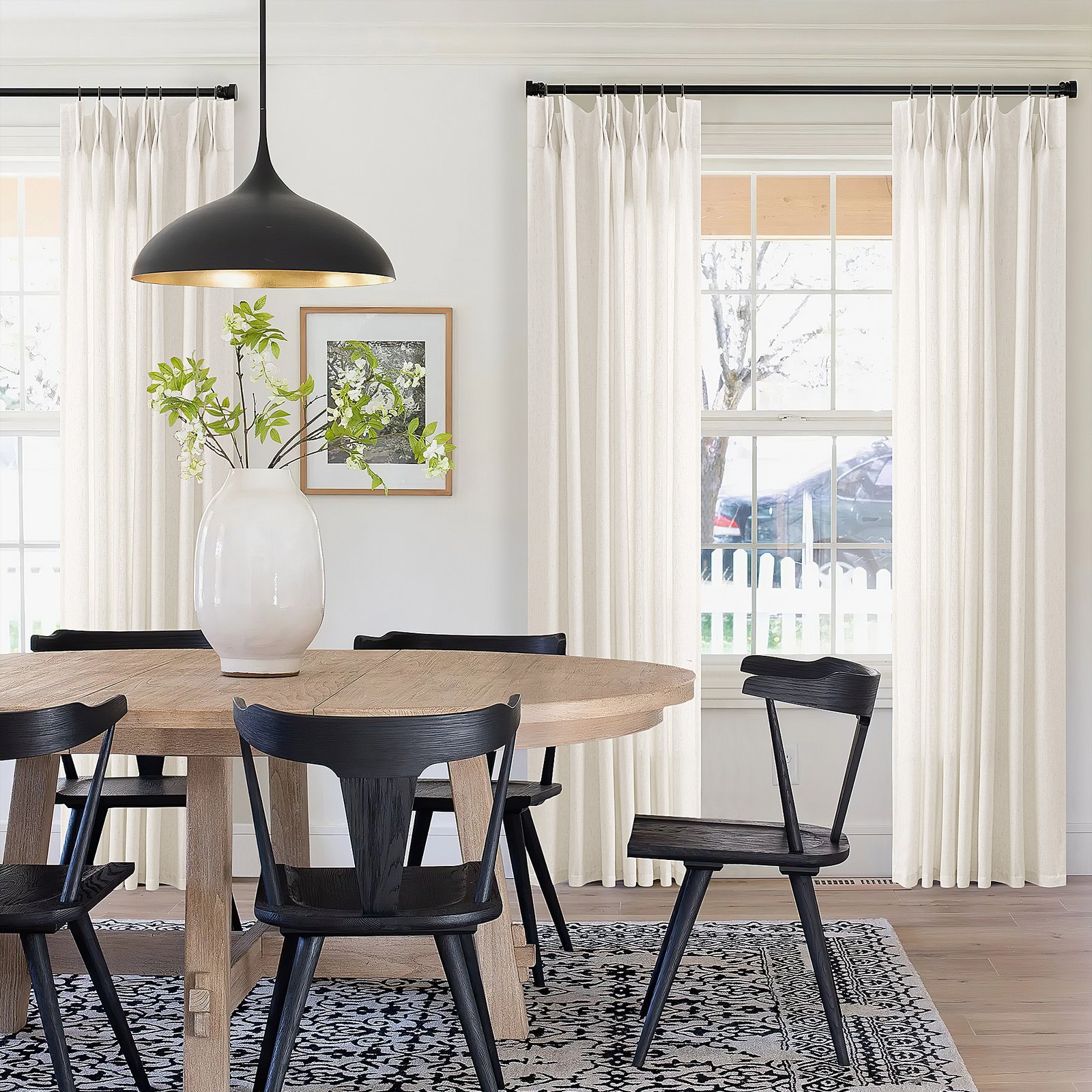 Pinch pleated accessories are included free of charge, with two color options – black or brass. Grommets are available in nickel or brass.