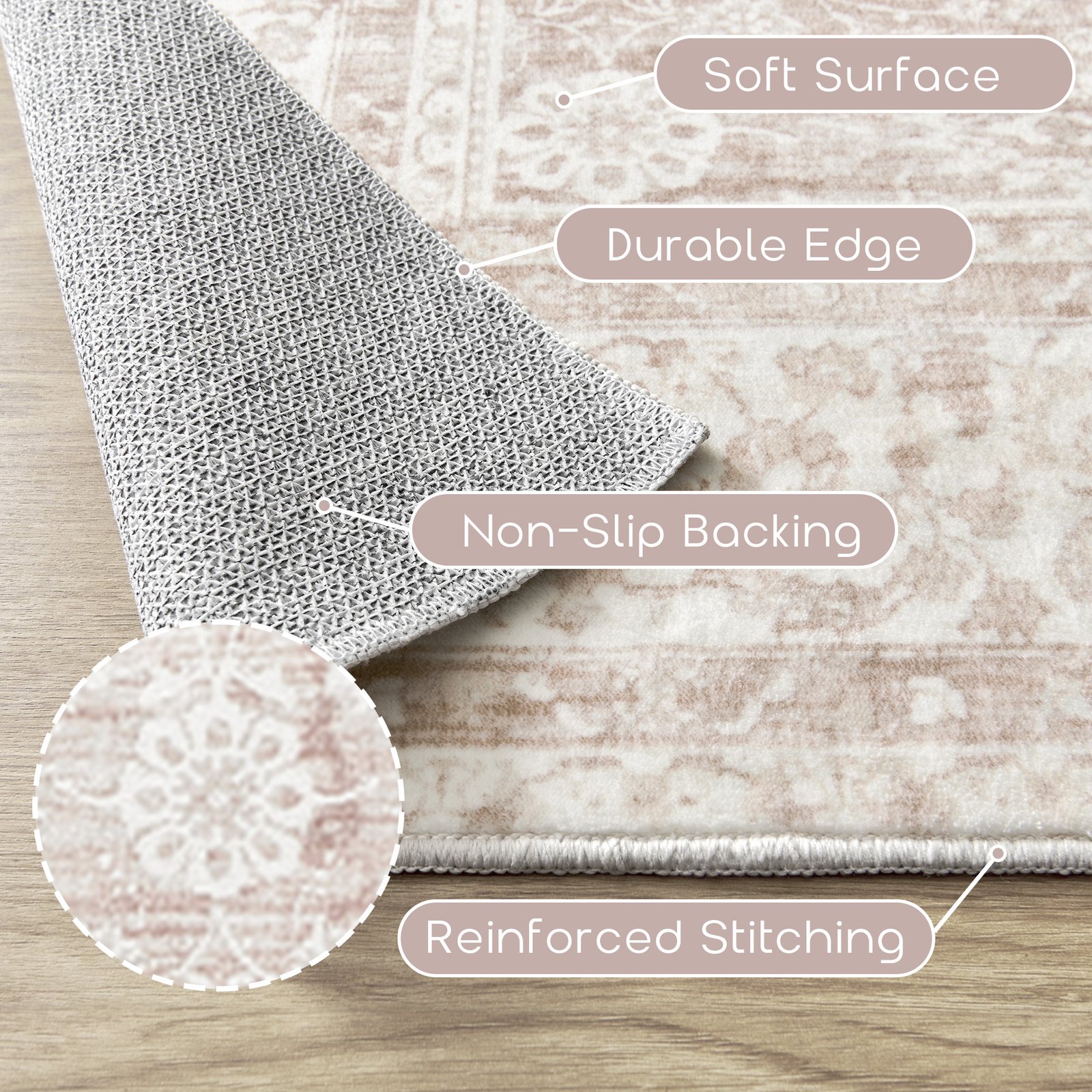 The BILEEHOME Washable Area Rug features a soft, durable polyester pile with a subtle printed design, perfect for high-traffic areas like the living room or kitchen. Its low-profile, rubber-backed construction is foldable and machine washable for easy maintenance—simply flatten any temporary creases by hand, and they will settle within a week. For added comfort on hard floors, use with a rug pad.