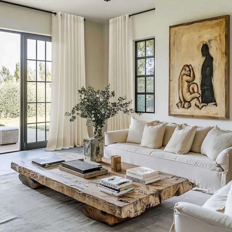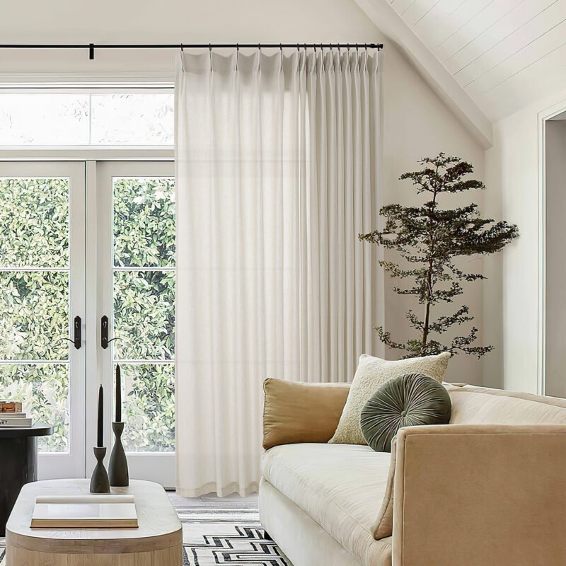 Semi-sheer curtains balance natural light and privacy, creating a bright and cozy space.
